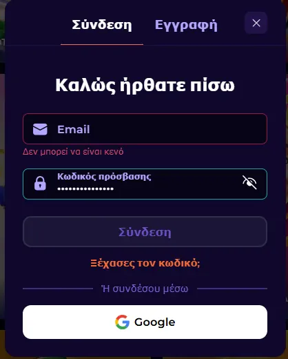 Μπορείτε επίσης να κάνετε γρήγορα εγγραφή χρησιμοποιώντας τον λογαριασμό σας Google για πιο γρήγορη εκκίνηση. Μόλις ενεργοποιηθεί το προφίλ σας, αποκτάτε άμεση πρόσβαση σε πάνω από 6.000 παιχνίδια από παρόχους όπως NetEnt, Pragmatic Play, Evolution Gaming, Nolimit City, BGaming και άλλους 76. Σημειώστε ότι επιτρέπεται μόνο ένας λογαριασμός ανά άτομο, νοικοκυριό, διεύθυνση IP και συσκευή. Αν εντοπίσουμε διπλότυπο λογαριασμό, όλα τα στοιχήματα, τα κέρδη και τα SlotsDJ μπόνους που σχετίζονται με αυτόν μπορεί να ακυρωθούν και τα χρήματα να ανακτηθούν.